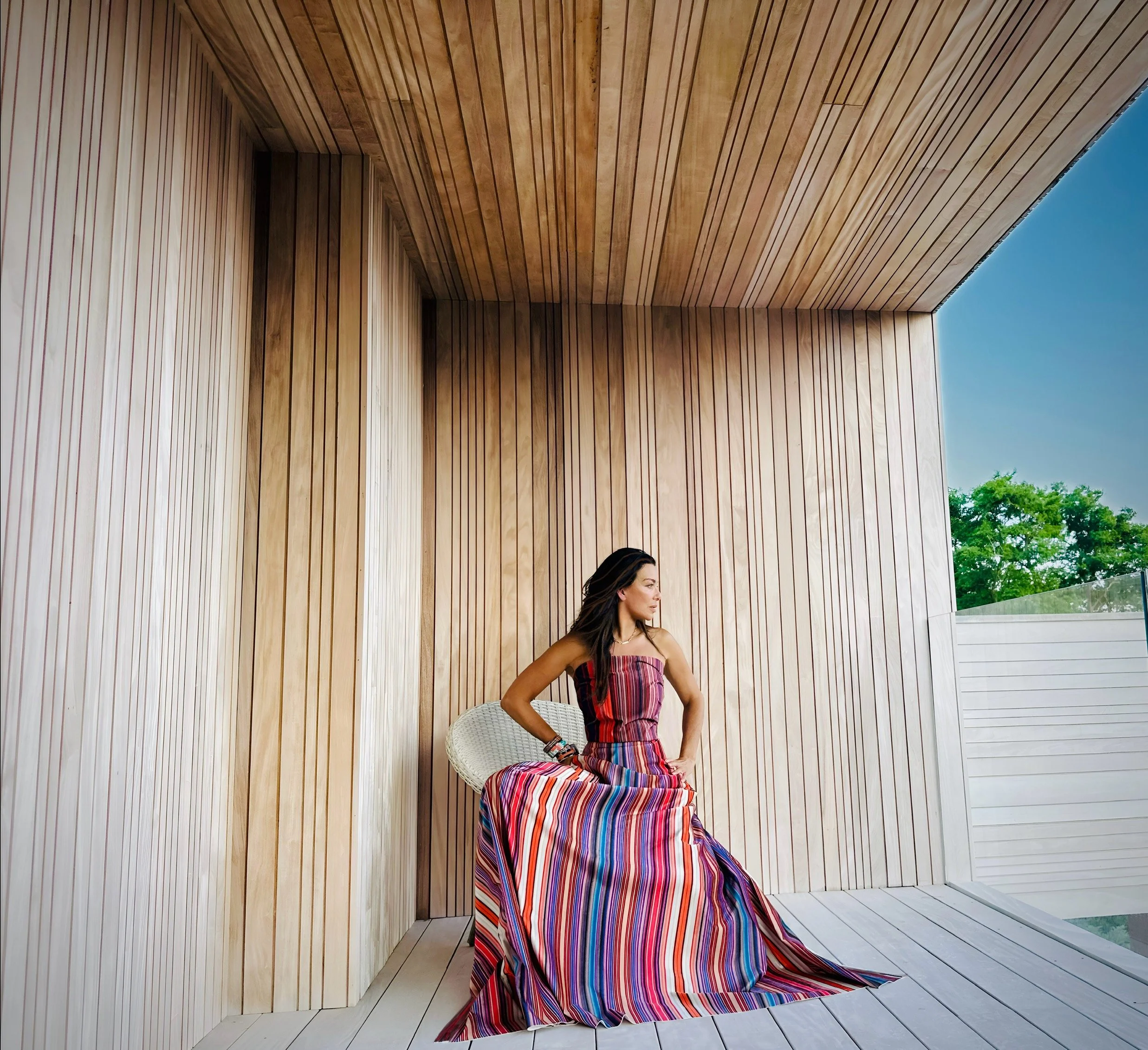 My earliest artwork was an obsession with lines. Probably because lines create order out of chaos. I had my first set of lines printed on textile, that I later designed into a dress. Design in all its forms is also a passion and I also work in interior and architectural concept development. The lines inspired me to design the siding of my house with identical sets of thin and thick lines; 8,000 square feet of garapa wood were etched with these crazy lines to continue my line motif throughout the house.