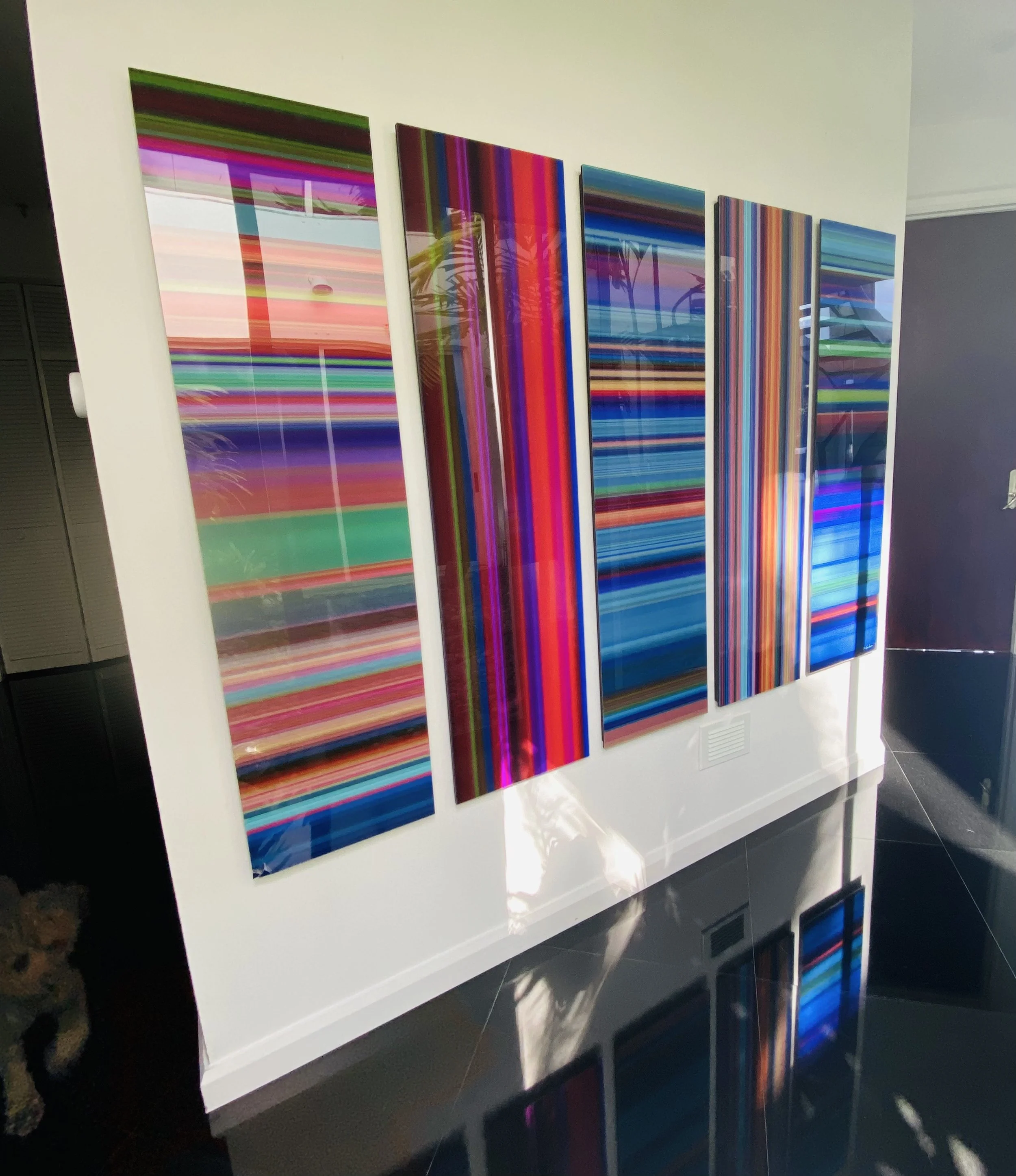 This series explores my fascination with lines and stripes expressed in gradients of colors. Lines create order from chaos, they represent progressions of thoughts, feelings, perceptions and insights throughout my own life experiences.